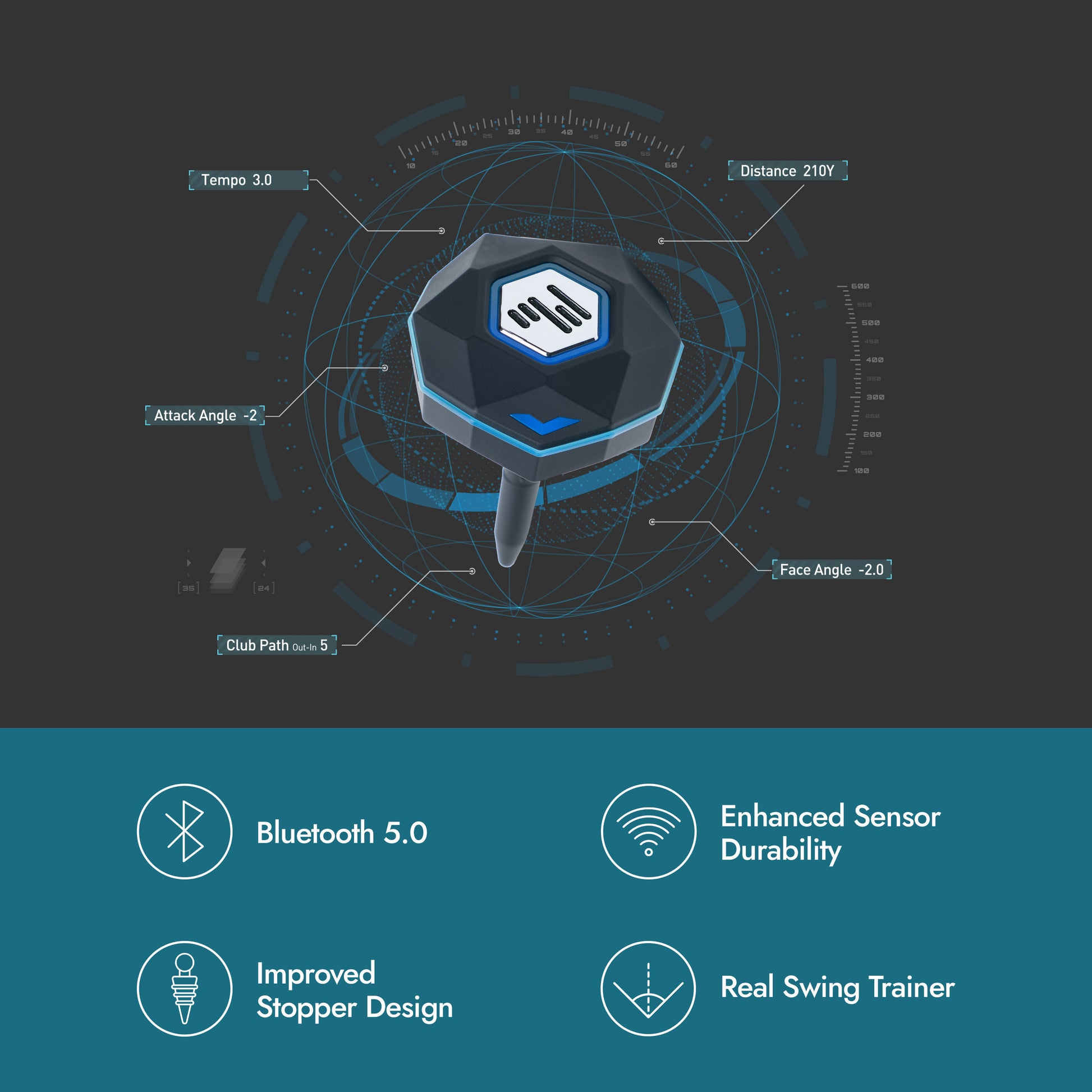 - Detailed swing metrics to track progress